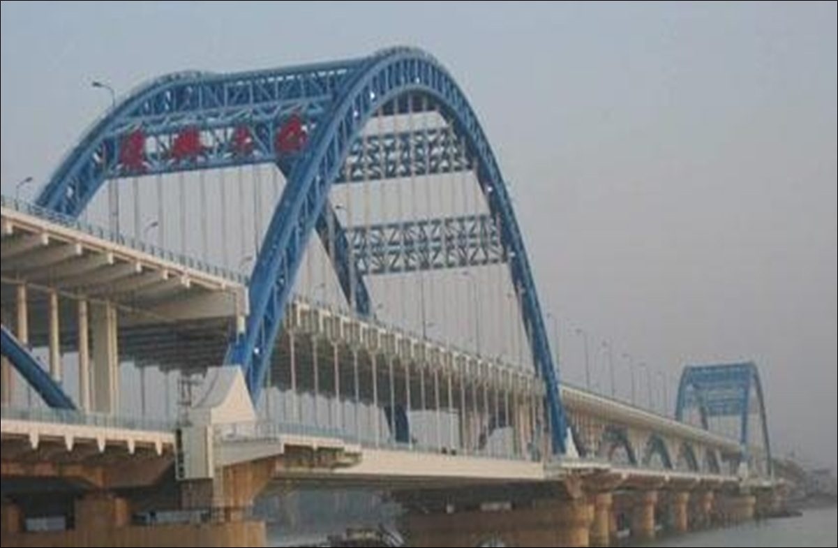 杭州錢塘江四橋(復興大橋)屬于雙層鋼拱橋,作為錢塘江上第一座特大型城市橋梁,于2004年10月建成通車,采用組合跨徑的雙層橋面鋼管混凝土系桿拱拱橋,橋梁上層設雙向六車道的快車道;下層中間為雙線輕軌,兩側設公交專用道、非機動車道及殘疾人專用設施,新穎、獨特的雙層鋼拱橋型國內外獨一無二,是目前我國最具備綜合性功能的城市橋梁。1、工程地點:浙江省杭州市