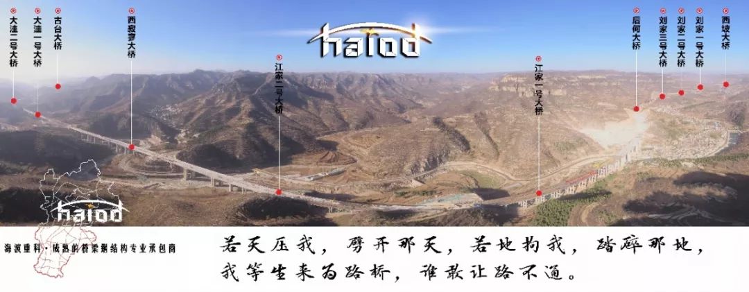 太行山高速公路邯鄲段海波重科承接內容為全線11座鋼-混組合梁大橋中工字鋼梁的制造及安裝,全線鋼結構工程量約31140噸。該項目地處太行山境內,地形、道路條件都極其復雜,施工難度巨大,工期極其緊張,工字鋼梁現場安裝工序繁瑣,現場建設拼梁場,桿件運輸至梁場后拼裝成榀,鋼梁總體采用架橋機架設,這些因素均為完成本項目的工期目標帶來了極大考驗。在面對諸多困難的情況下,海波重科總經理劉乾俊的舉動極大的鼓舞了太行項目部,這也使得太行山高速公路邯鄲段全線11座工字型鋼-混組合梁大橋的順利貫通。