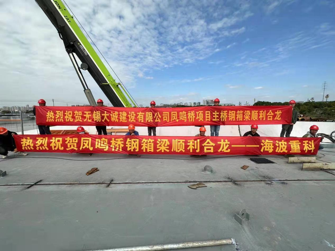 (海波重科新聞報道)10月29日,無錫鳳鳴橋項目主橋鋼箱梁順利合龍,工程取得階段性勝利。為全面進入主橋施工建造奠定了堅實的基礎。