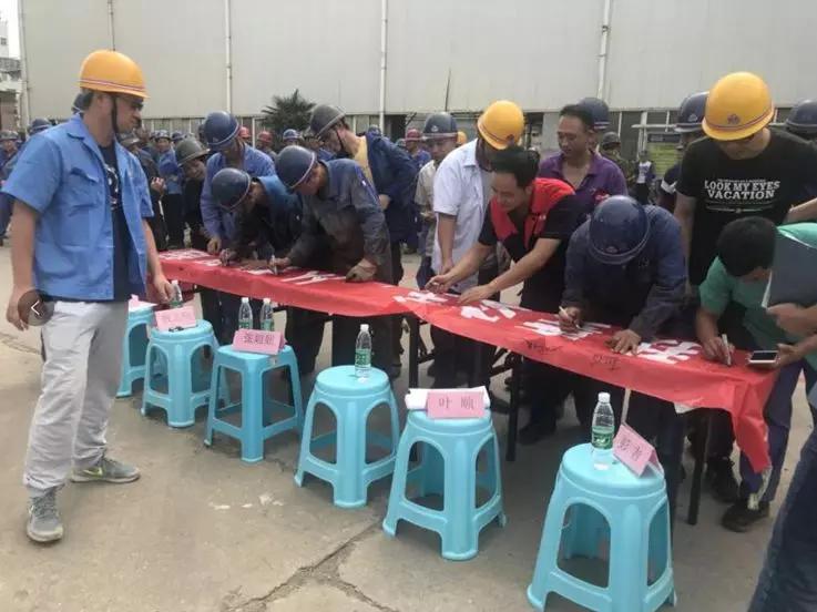 接著由敖志碩給全體員工講解了滅火要點(diǎn),為了將所學(xué)知識付諸實(shí)踐,“趁熱打鐵”在員工中普及滅火器的使用方法,講解結(jié)束后,在廠區(qū)四跨前面舉行了滅火器滅火演練比賽,由公司領(lǐng)導(dǎo)打分,最終技術(shù)部獲得第一名,下料機(jī)加車間獲得第二名,總經(jīng)辦第三名。在滅火器滅火實(shí)戰(zhàn)演練比賽后,進(jìn)行了“我要安全,從我做起”的宣誓簽字活動,全體員工進(jìn)行簽字活動